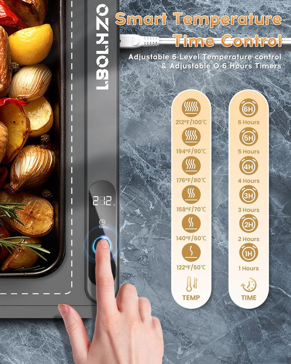 Yes! With 6 adjustable temperature levels ranging from 122°F to 212°F, you can easily find the perfect warmth for every dish. Plus, the auto shut-off feature ensures safety while your food stays at just the right temperature.